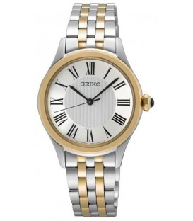 Montre SEIKO référence SUR612P1.Dans la collection CLASSIQUE QUARTZ de la marque SEIKO.DAME ROMAN CADRAN BLANC BICOLORE JAUNE