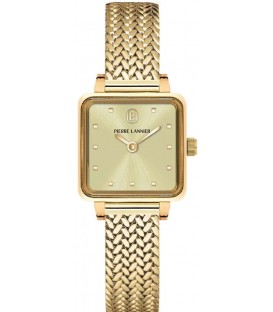 Montre PIERRE LANNIER référence 059H542.Dans la collection NEORA doré milanais de la marque PIERRE LANNIER.boîtier acier doré de 20 x 20 mm, d'un cadran doré sur un bracelet milanais doré. Eta
