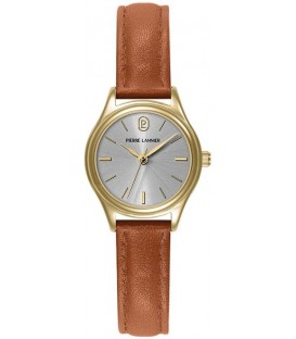 Montre PIERRE LANNIER référence 021K524.Dans la collection PYA doré cuir de la marque PIERRE LANNIER.Acier Inoxydable Doré Quartz Ronde 26Mm Fond Argenté Bracelet Cuir De Veau Camel