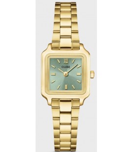 Montre CLUSE référence CW13805.Dans la collection La Tétragone Multifunction de la marque CLUSE.Multifunction Acier Doré Carré Quartz 30mm Fond Vert Bracelet Acier Inoxydable Doré