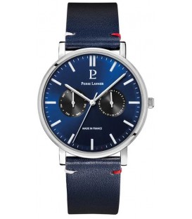 Montre PIERRE LANNIER référence 206J166.Dans la collection ESSENTIAL argenté cuir de la marque PIERRE LANNIER.Acier Inoxydable Argenté Quartz Multifonctions Ronde 40,5Mm Fond Bleu Bracelet Cui