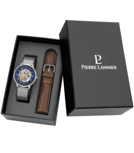 Montre PIERRE LANNIER référence 391C168.Dans la collection Coffret Homme AUTOMATIC de la marque PIERRE LANNIER.Cadran Bleu Bracelet Acier milanais Argenté