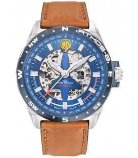 Montre PATROUILLE DE FRANCE référence 668096.Dans la collection ATHOS 8 de la marque PATROUILLE DE FRANCE.Conception et fabrication : Ateliers LIP à Besançon. Automatique Bleu Cuir marron