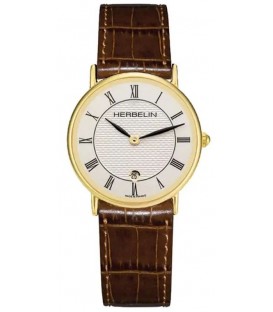 Montre HERBELIN référence 12443P08MA.Dans la collection CLASSIQUE 34MM PVD de la marque HERBELIN.Plaque Or Ronde 34mm Fond Blanc Cuir Marron