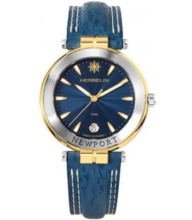 Montre HERBELIN référence 12255T35.Dans la collection NEWPORT ORIGINALS BICO de la marque HERBELIN.Acier Plaque Ronde 38.5mm Fond Bleu Bracelet Cuir Bleu