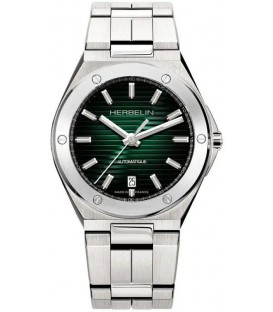 Montre HERBELIN référence 12245B16.Dans la collection CAP CAMARAT 40.5MM de la marque HERBELIN.Quartz 40.5mm Fond Vert Lunette Argente Bracelet Metal Argente