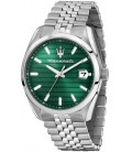 Dans la collection ATTRAZIONE 43MM 3H GREEN DIAL SS BR de la marque MASERATI.