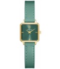 Acier Inoxydable Doré Quartz Carre 22,9Mm Fond Vert Bracelet Cuir De Veau Vert