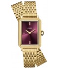 Acier Inoxydable Doré Quartz Rectangulaire 30,6Mm Fond Bordeaux Bracelet Double Tour Acier Inoxydable Doré