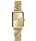 boîtier de 21x28,5 mm avec un cadran doré. Le bracelet acier doré.
