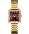 Acier Inoxydable Doré Quartz Carre 28,5Mm Fond Bordeaux Et Pierres Dorees Bracelet Acier Inoxydable Doré