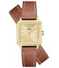 Acier Inoxydable Doré Quartz Carre 24Mm Fond Doré Lunette Strass Bracelet Double Tour Cuir De Vache M