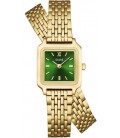 Acier Inoxydable Doré Quartz Carre 21Mm Fond Vert Bracelet Double Tour Acier Inoxydable Doré