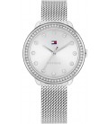 Toute acier bracelet milanais, cadran argent lunette strassée.