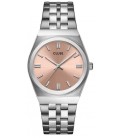 Acier Inoxydable Argenté Ronde Quartz 40x33mm Fond Rose Bracelet Acier Inoxydable Argenté