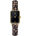 Ariane Acier Inoxydable Doré Quartz Rectangulaire 21X28,4Mm Fond Noir Bracelet Cuir De Vea