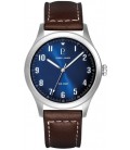 Aviateur Acier Inoxydable Argenté Quartz Ronde 40Mm Fond Bleu Bracelet Cuir De Veau