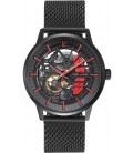 Acier Noir Ronde Automatique 43mm Fond Noir Et Rouge Bracelet Acier Noir Milanais