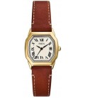 Acier Dore Geometrique Quartz 27mm Fond Creme Bracelet Cuir De Vache Marron