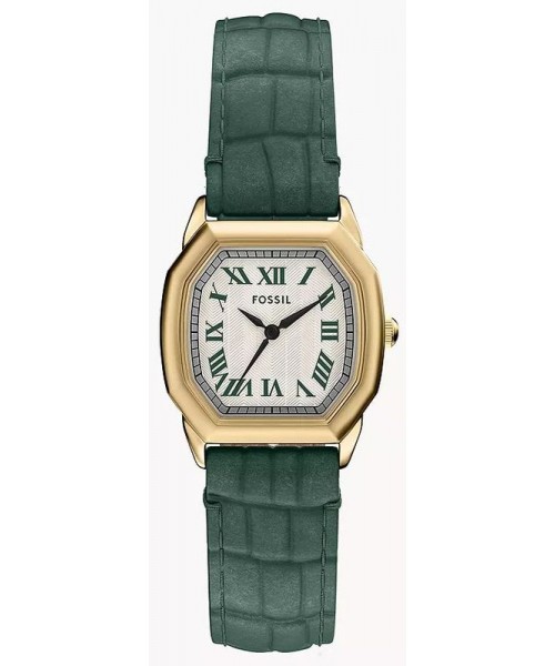 Acier Dore Geometrique Quartz 27mm Fond Creme Bracelet Cuir vert
