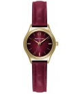 Acier Inoxydable Doré Quartz Ronde 26Mm Fond Bordeaux Bracelet Cuir De Veau Bordeaux
