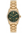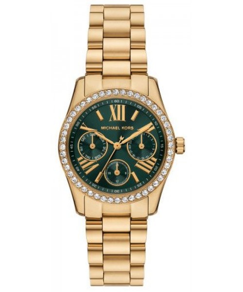 Acier Inoxydable Doré Quartz Multifonctions Ronde 33Mm Fond Vert Lunette Strass Bracelet Acier I