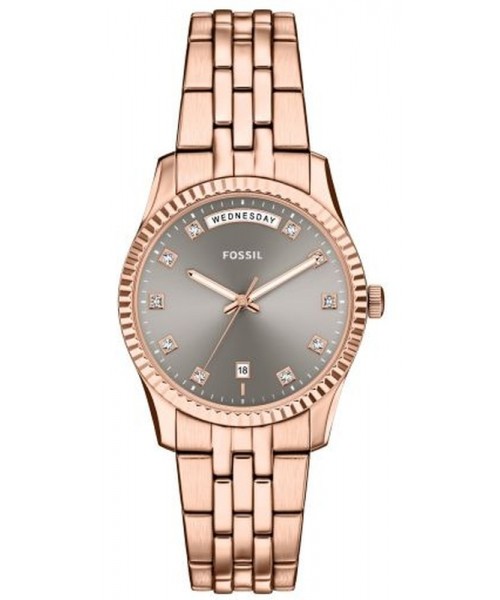 Boîtier Inox 34 mm en diamètre et est équipée d'un bracelet Inox.