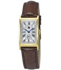 Boitier rectangulaire en acier doré de 39x21mm, d'un cadran doré et d'un bracelet en cuir marron