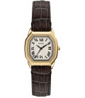 Acier Inoxydable Doré Quartz Octogonale 27Mm Fond Crème Bracelet Cuir De Vache Marron