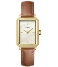 Acier Inoxydable Doré Rectangulaire Quartz 30.6mm Fond Blanc Bracelet Cuir De Vache Marron