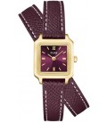 Acier Inoxydable Dore Quartz Carre 21Mm Fond Bordeaux Bracelet Double Tour Cuir De Vache Bordeaux