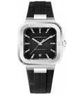 Acier Argente Carre Automatique 39mm Fond Noir Bracelet Silicone Noir