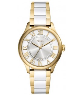 Montre FOSSIL référence CE1131.Dans la collection Gilmore de la marque FOSSIL.Acier Inoxydable Doré Quartz Ronde 38Mm Fond Blanc Bracelet Céramique Bicolore Doré/Blanc