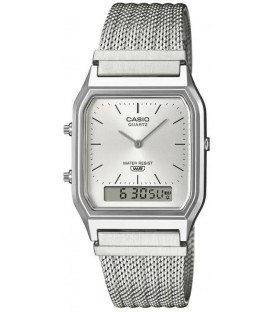 Montre CASIO référence AQ-230GA-5AMQYES.Dans la collection VINTAGE BRACELET MILANAIS de la marque CASIO.Deuxième fuseau horaire, chronomètre 1/100sec, alarme, calendrier automatique.