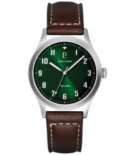 Montre PIERRE LANNIER référence 260G174.Dans la collection AVIATEUR argenté cuir de la marque PIERRE LANNIER.Acier Inoxydable Argenté Quartz Ronde 40Mm Fond Vert Bracelet Cuir De Veau Brun