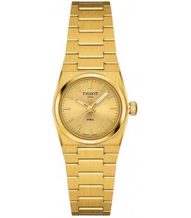 Montre TISSOT référence T1370103302100.Dans la collection PRX Quartz 25mm de la marque TISSOT.Boîte en acier inoxydable 316L avec revêtement PVD or jaune